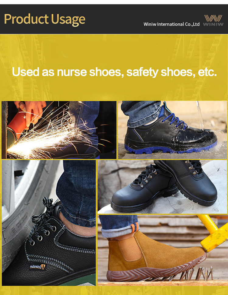 Dieses Material eignet sich für Sicherheitsschuhe, Baustiefel und Arbeitsschuhe und ist ideal für Marken, die Wert auf Arbeitsschutz, Langlebigkeit und die Einhaltung von Sicherheitsstandards (EN ISO 20345, ASTM F2413) legen. Es ist in verschiedenen arbeitsgerechten Farben (Schwarz, Braun, Grau) erhältlich und kann durch unterschiedliche Stärken individuell angepasst werden. Für alle, die ein durchstoßfestes und robustes Material für das Obermaterial von Sicherheitsschuhen suchen, setzt dieses PVC-Kunstleder von WINIW neue Maßstäbe für Arbeitssicherheitsschuhe.